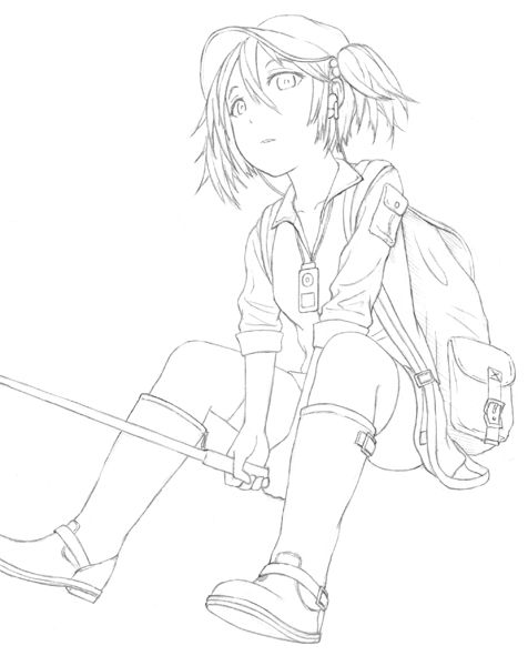 今回はにとりだけ線画を描き、背景は色だけで描いてみました。