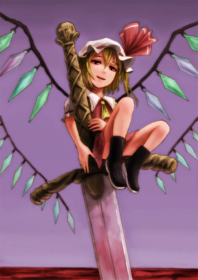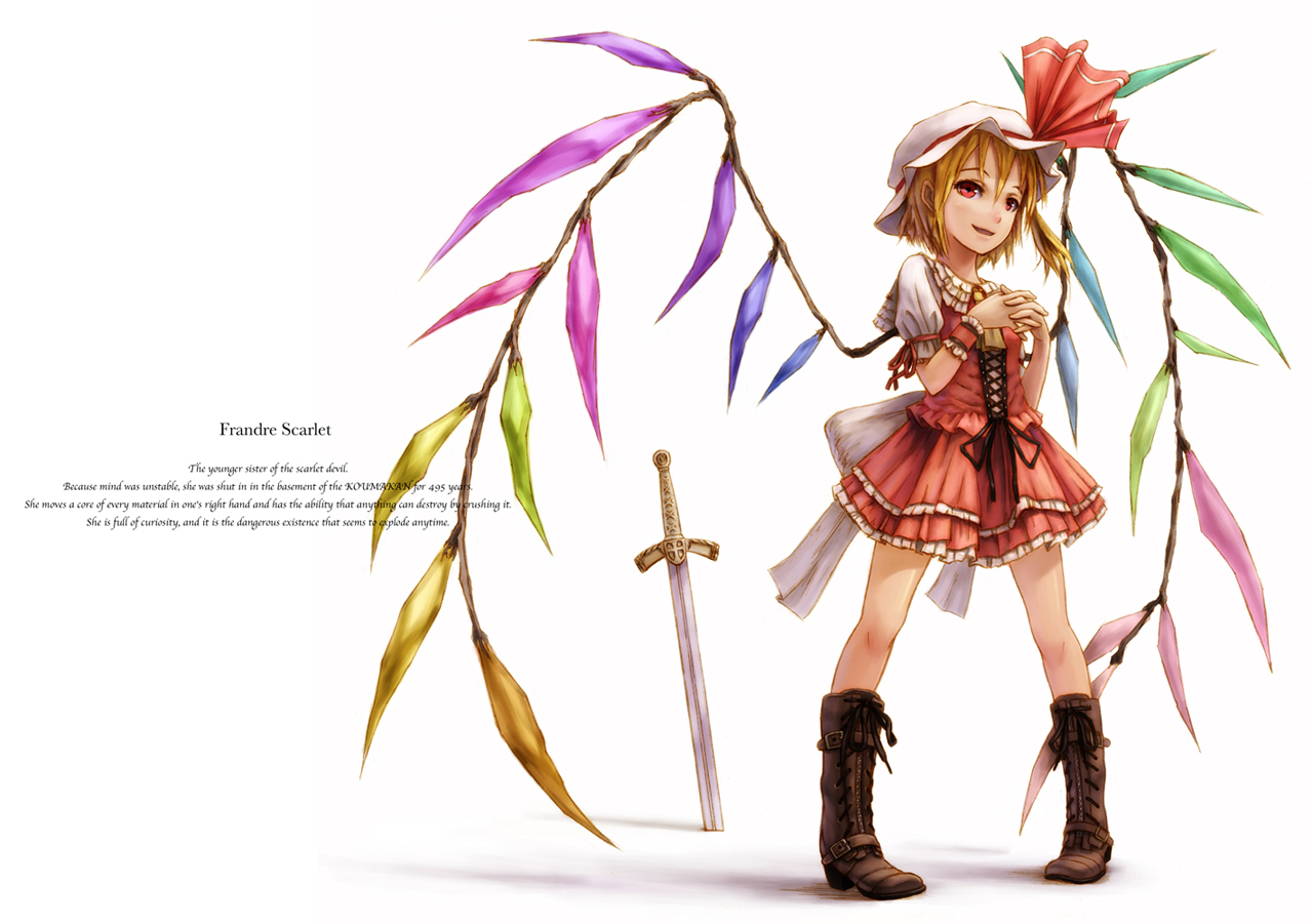 フランドールが好き、ブーツが好き、太ももにミニスカートが好き、でかい羽が好き、細かい装飾が好き、剣とか武器が好き、なんかようわからん英文が好き、立ち絵が好き、とにかく自分の好きな物尽くしで埋めてみました。