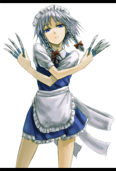 咲夜さん。あまり時間をかけず、すこし勢いだけで描いてみようと思って、いつもの半分くらいの時間で描いてみた。